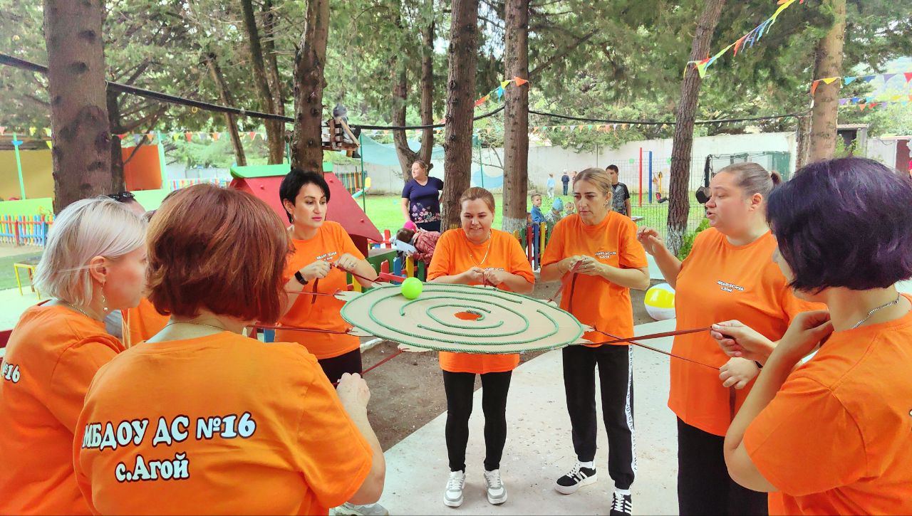 Необычное, но очень яркое мероприятие ко Дню дошкольного работника в агойском «Петушке». Коллективы в детских садах преимущественно (да что скрывать – полностью) женские, поэтому спортивное состязание в формате тимбилдинга, объединило педагогов и мам воспитанников. Командная игра — это всегда здорово: объединяет, способствует общему настрою и дарит заряд бодрости как никакая друга! А когда свои соперники люди, объединенные одной задачей, то вдвойне интересно!
