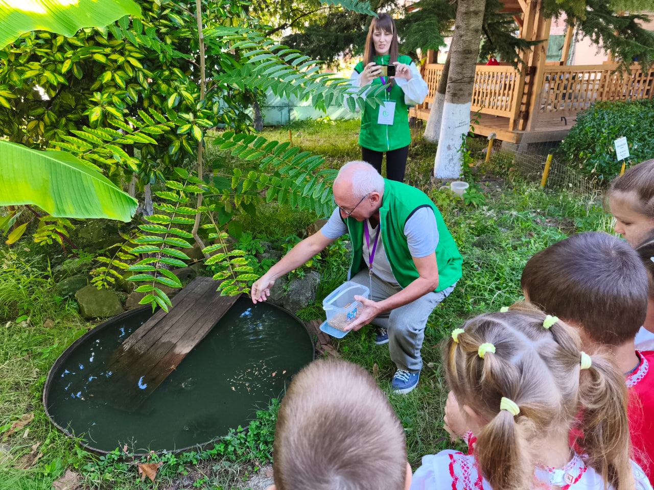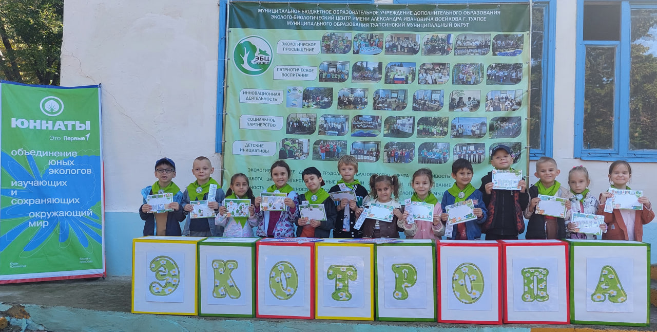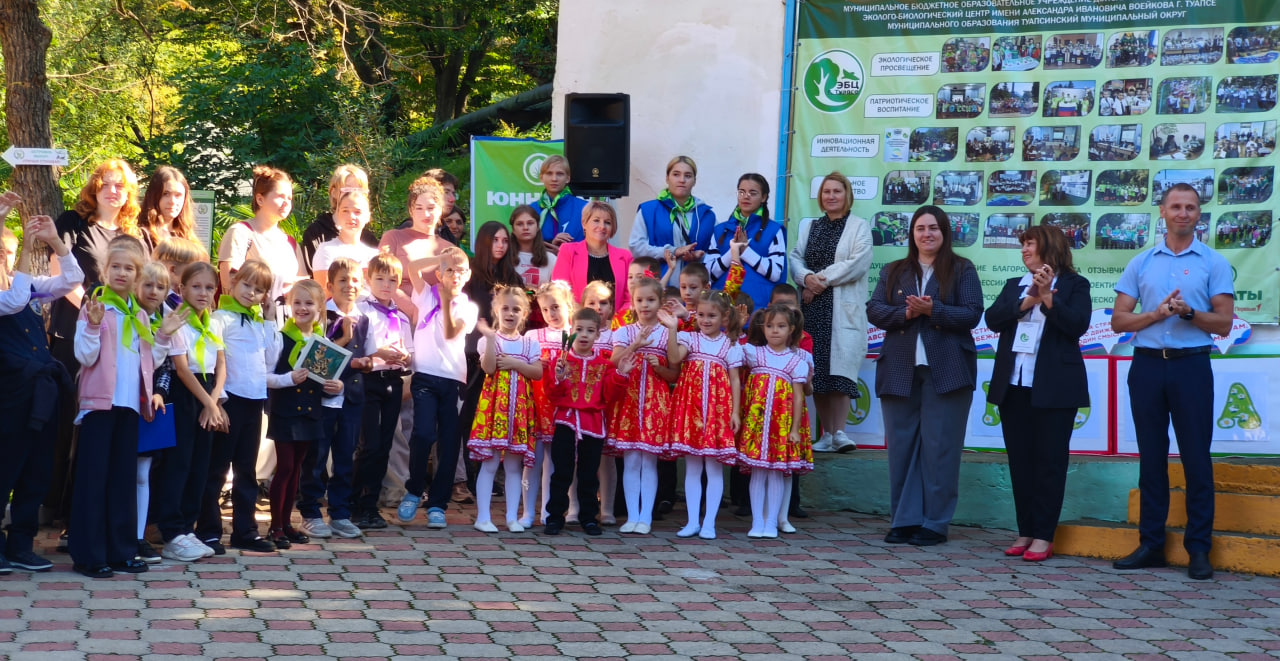 Торжественное открытие экотропы «Юннатская история» в эколого-биологическом центре – событие. Сотрудники центра, администрация, школьники, студенты и воспитанники туапсинских «Ивушки» и «Дюймовочки».
