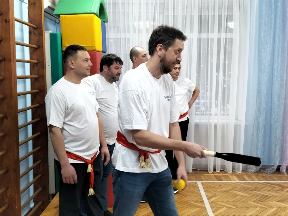 Обучение детей этой народной игре в детском саду «Ручеек» города Туапсе детском саду начали с упрощенного варианта, а на масленичной неделе и накануне Дня защитников Отечества педагоги предложили родителям (папам) поучаствовать в физкультурном празднике «Лапта - русская народная игра!».