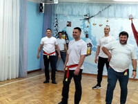 Декорации, костюмы участников, танцы и даже награждение – все с русском стиле. Участники остались очень довольны: помимо отлично проведенного времени папы освоили исконно русскую забаву и посоревновались в ловкости.