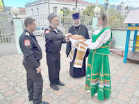 В туапсинском «Голубке» почётные гости: атаман туапсинского казачьего общества Павел Волошин, духовный наставник отец Николай и заместитель атамана Олег Заступ. Дошколята показали свою казацкую удаль и смекалку в играх-соревнованиях, умение исполнения казачьих песен и задорных танцев.